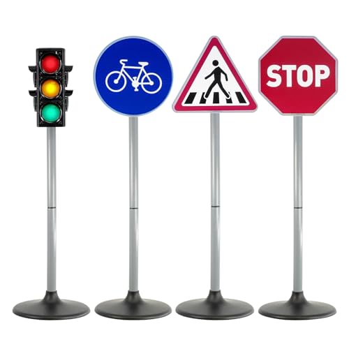 The Magic Toy Shop Traffic Light Toy with Sounds & Lights, Including 3 Road Signs - Dual Modes, Battery Operated, Interactive - Road Safety for Kids, Educational Outdoor Role Play Toys for Children