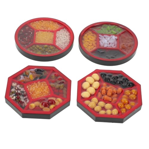 Milisten 4pcs Miniature Dollhouse Food Tray Realistic Artificial Rice and Beans Figurines Lightweight Kitchen Shop Decoration for Pretend Play