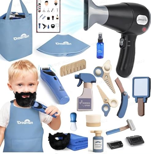 Dreamon Barber Shop For Kids Role Play Toys - Kids Hairdressing Set - Kid Barber Playset for 3 4 5 6 Year Olds