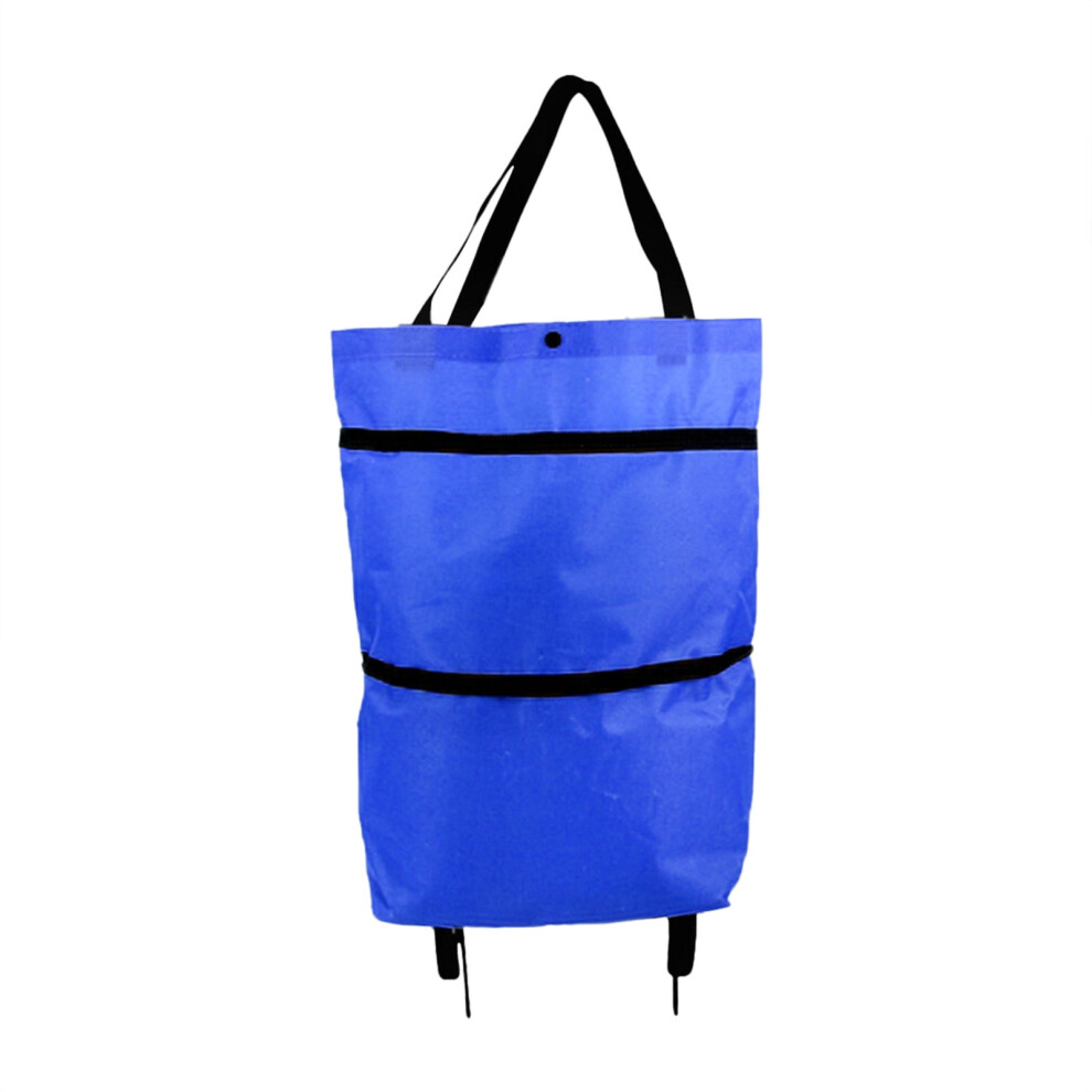 2 in 1 Foldable Shopping Bag Foldable Shopping Cart with Wheels, Reusable Collapsible Shopping Trolley Bags Multifunctional Telescopic Grocery Bag for Easily Storage (blue)