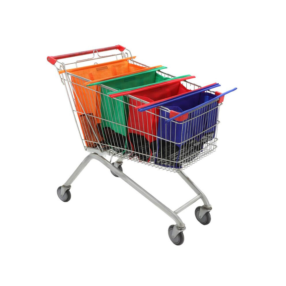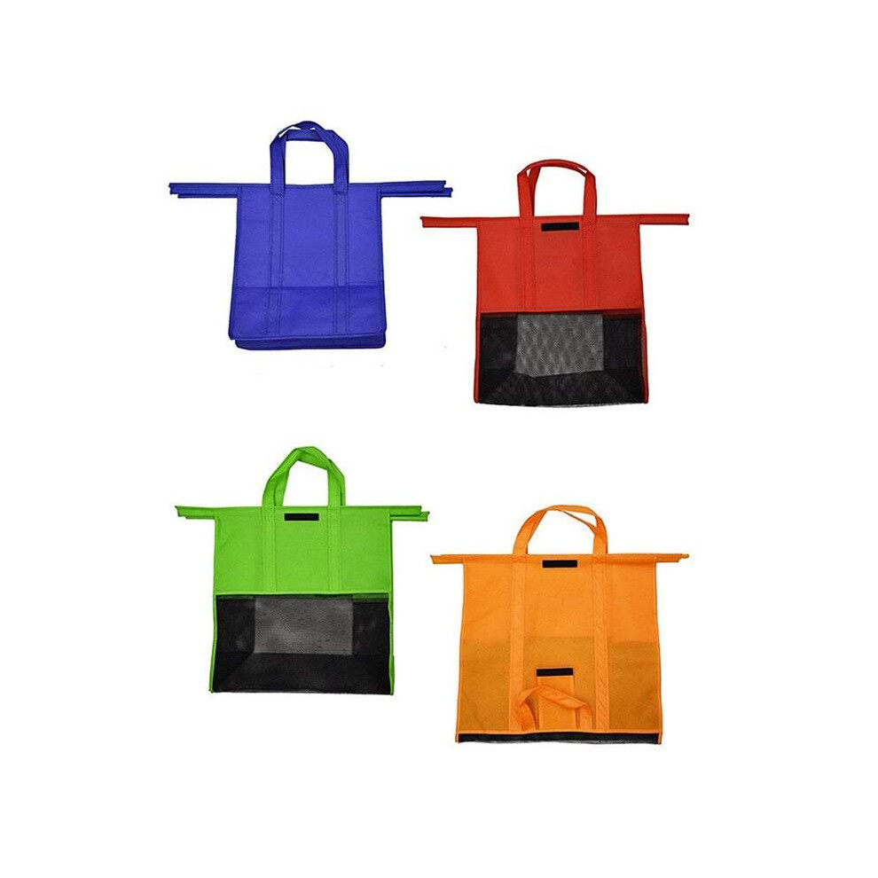 (Default) 4-Piece Reusable Trolley Bags Set - Folding Supermarket Shopping Trolley Bags in Orange Green Red and Blue for Women