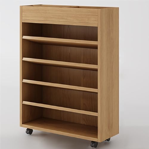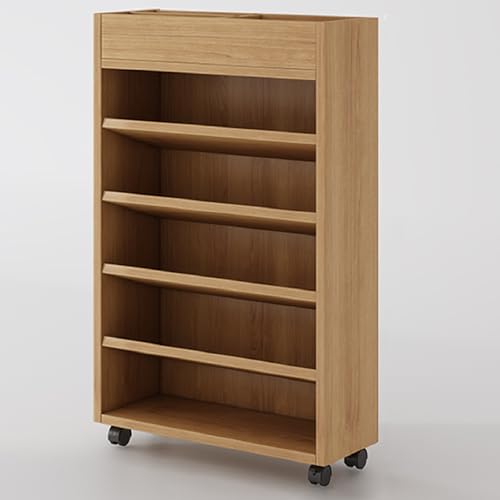 Rolling Book Cart Wooden Storage Shelf with Wheels, Small Wood Organizer Rack for Living Room Bedroom Office, Short Bookcase Mobile Storage Unit in Walnut or Natural Natural wood 23.6*9.8*29.5in