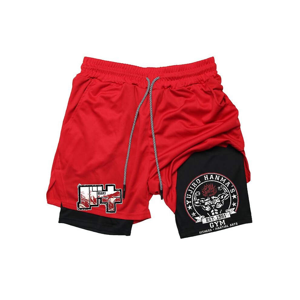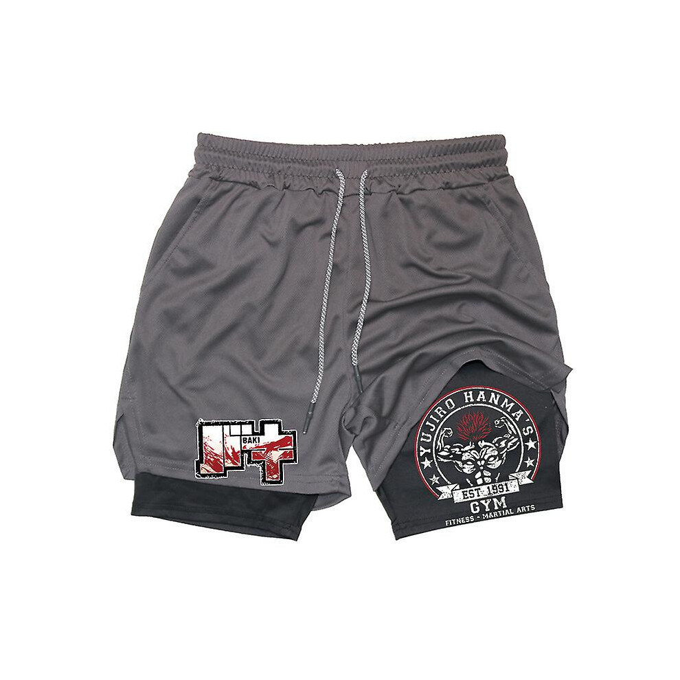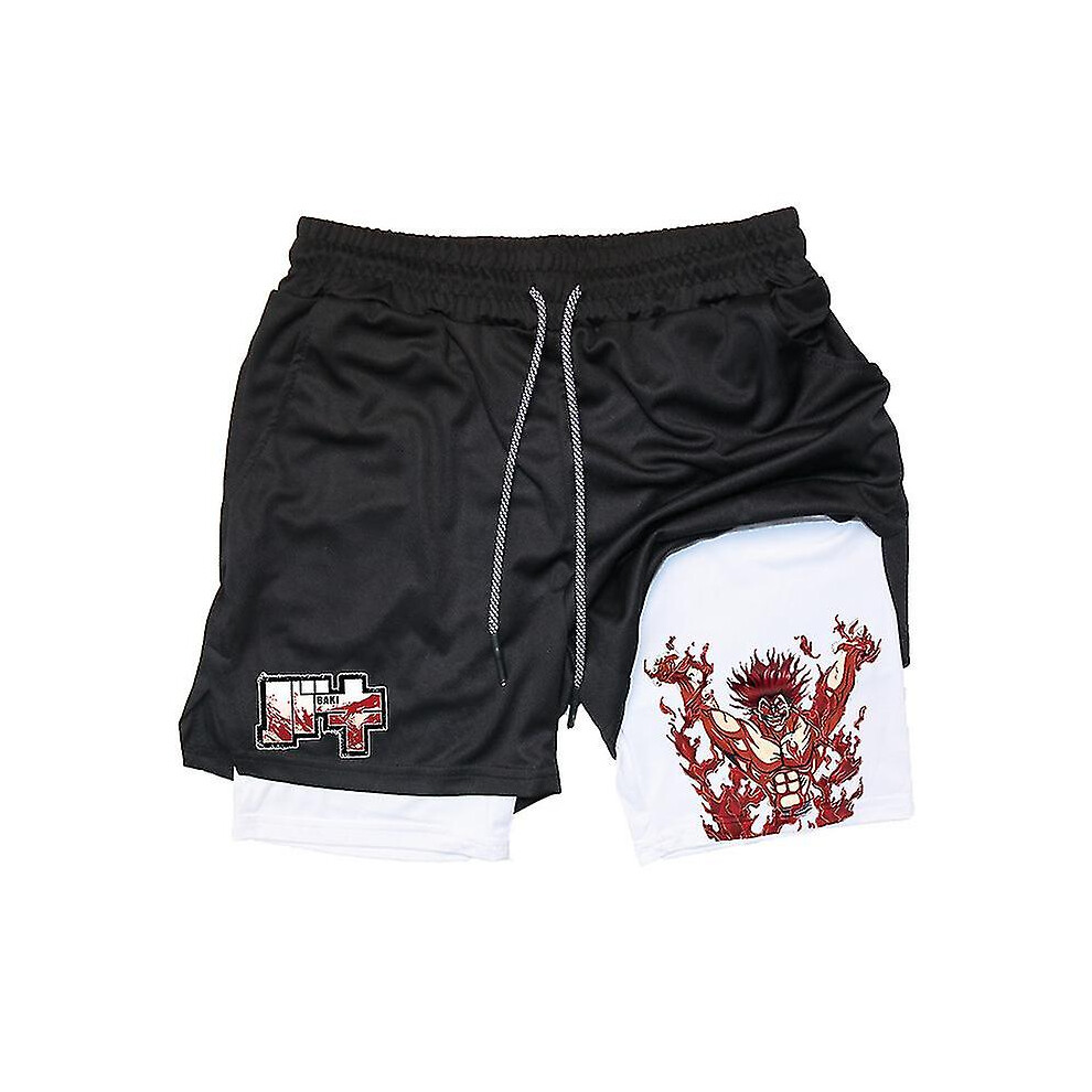 (L, Style 2) Anime Baki 2-in-1 Gym Performance Short Mens Athletic Compression Shorts Quick Dry Stretch Workout Fitness Running Jogging