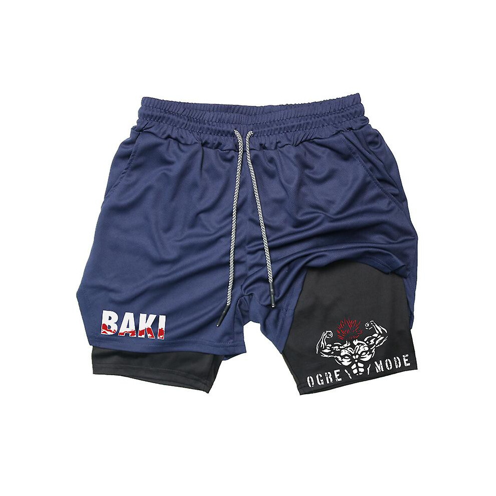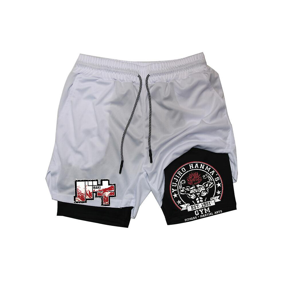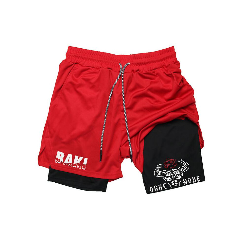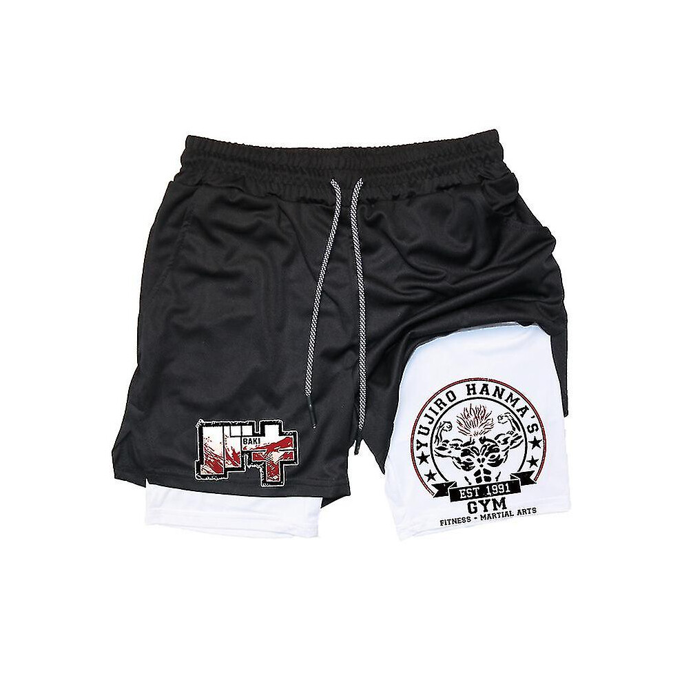 (L, Style 2) Anime Baki 2-in-1 Gym Performance Short Mens Athletic Compression Shorts Quick Dry Stretch Workout Fitness Running Jogging