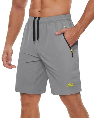 TACVASEN Gym Shorts Mens Zip Pockets Training Shorts Sports Compression Shorts Mens Running Tracksuit Fitness Exercise Short Quick Dry Summer Shorts Light Grey