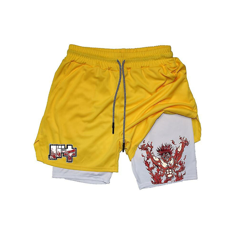 (XL, Style 3) Anime Baki 2-in-1 Gym Performance Short Mens Athletic Compression Shorts Quick Dry Stretch Workout Fitness Running Jogging