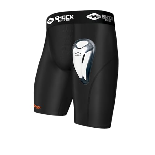 Shock Doctor 221 Short Compression with BioFlex Cup — Athletic Support with Comfort and Compression for Maximum Range of Motion — Youth and Adult (One Pair Shorts & Athletic Cup)