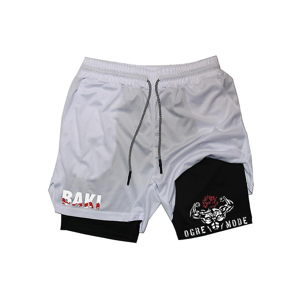 (XXL, Style 3) Anime Baki 2-in-1 Gym Performance Short Mens Athletic Compression Shorts Quick Dry Stretch Workout Fitness Running Jogging