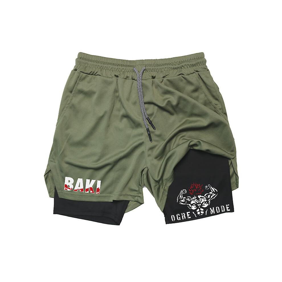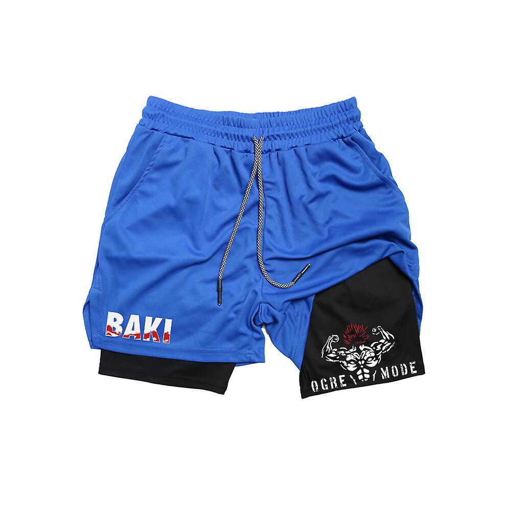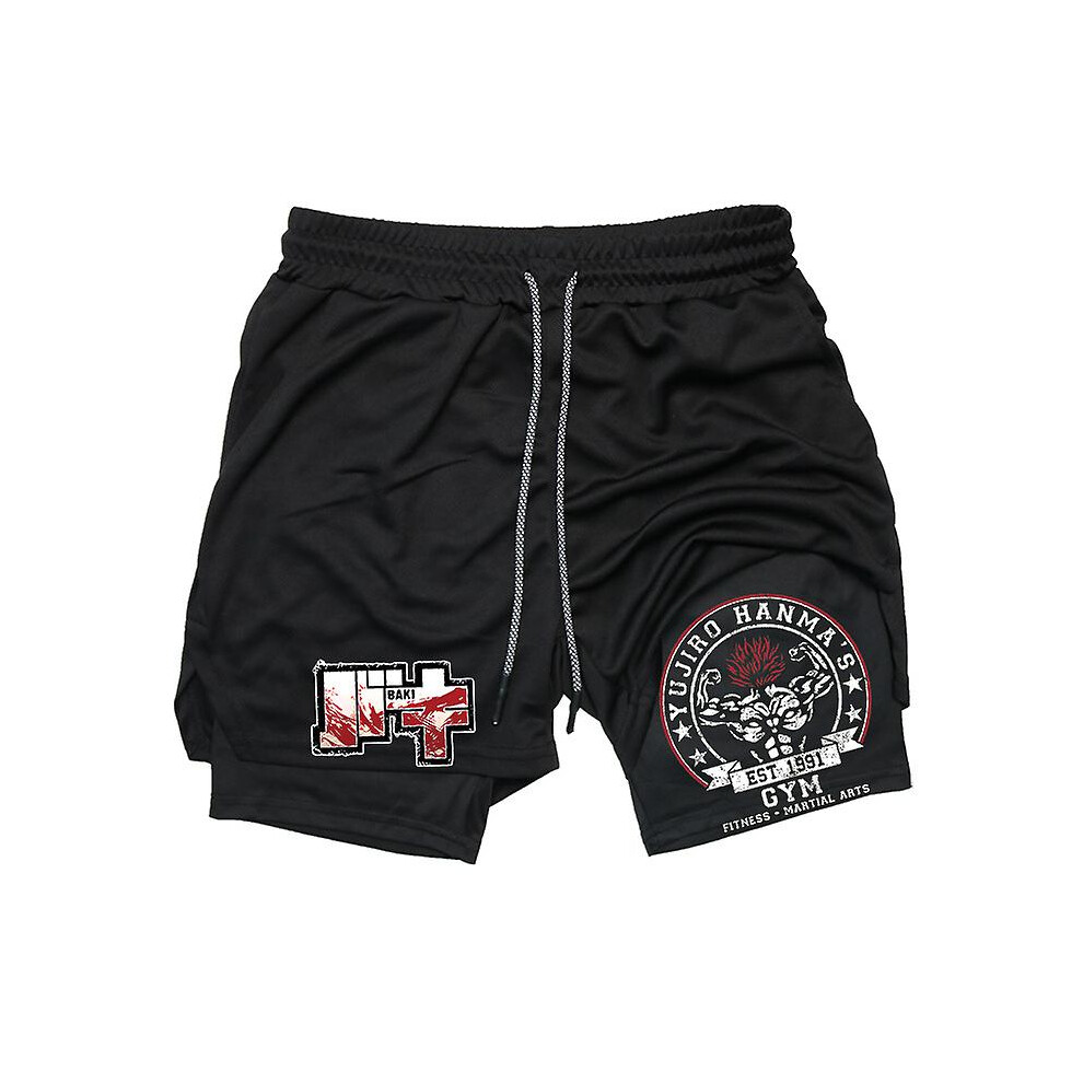 (L, Style 3) Anime Baki 2-in-1 Gym Performance Short Mens Athletic Compression Shorts Quick Dry Stretch Workout Fitness Running Jogging