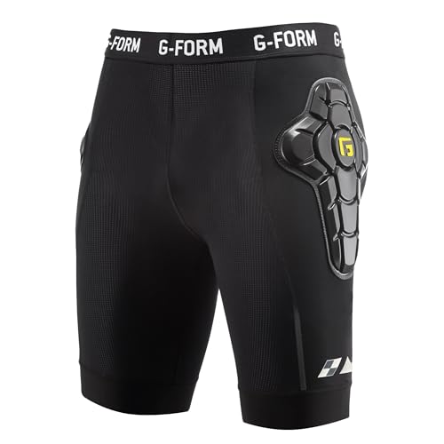 G-Form EX-1 Bike Short Liner - Padded Compression Shorts for Men - Protective Bike Shorts for BMX and Snowboarding - Black/Yellow, Adult X-Large