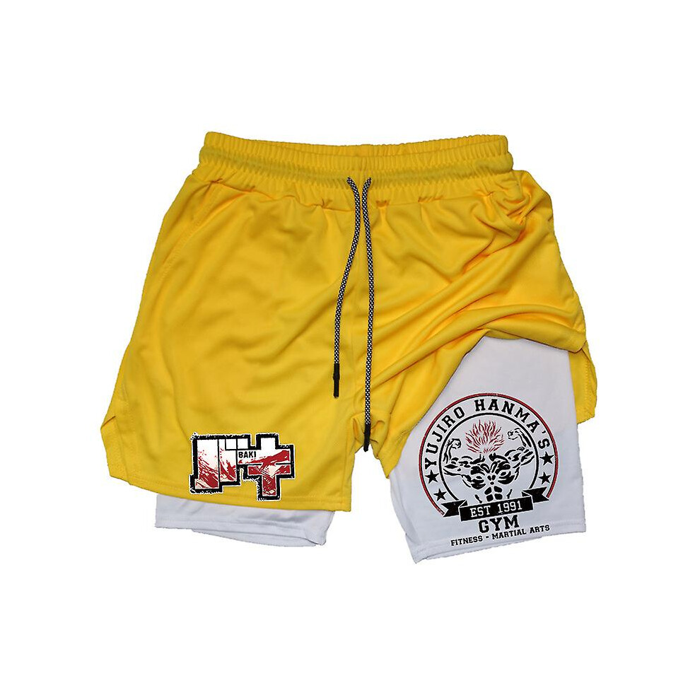 (XL, Style 6) Anime Baki 2-in-1 Gym Performance Short Mens Athletic Compression Shorts Quick Dry Stretch Workout Fitness Running Jogging