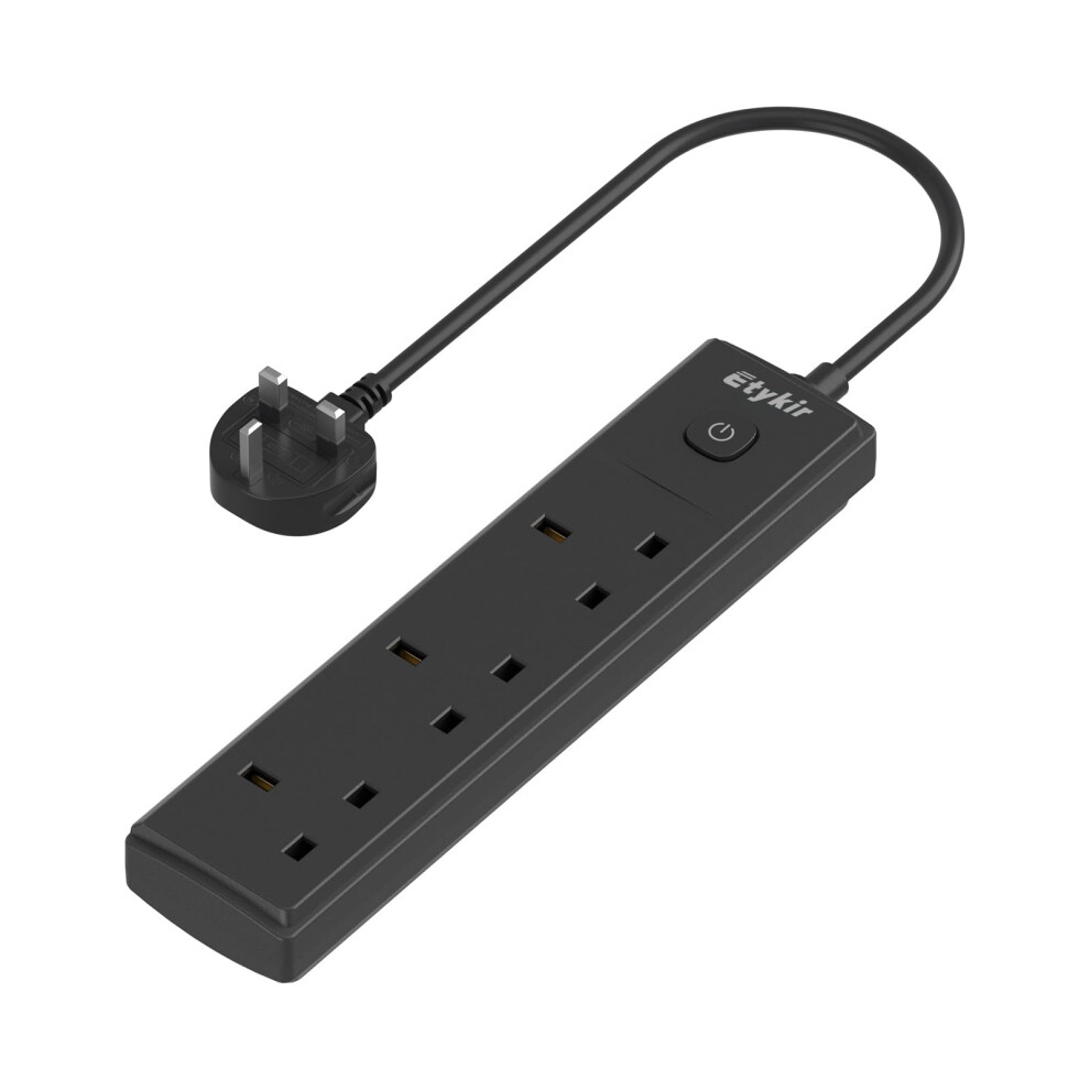 Short Extension Lead, 0.5M Small Extension Cable (13A/3250W), 3 Way Switched Extension Lead, Power Strip, Surge Protector, Black