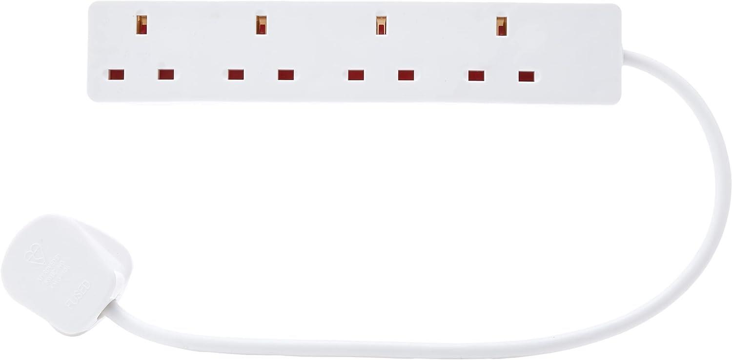 0.5m 50cm Short 4 Gang Way Outlet Mains Extension Cable Lead Socket - White