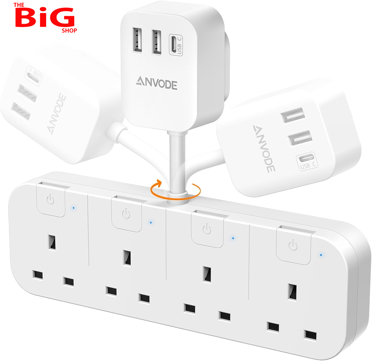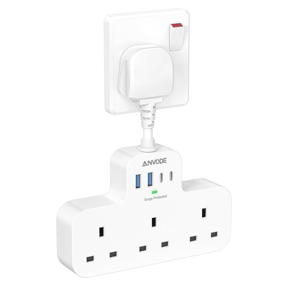 Multi Plug Extension Socket with USB C, ANVODE 3 Way Plug Adaptor with Flexible Socket, Adapter Plug UK Turn 1 to 7, Short Extension Lead Power Strip