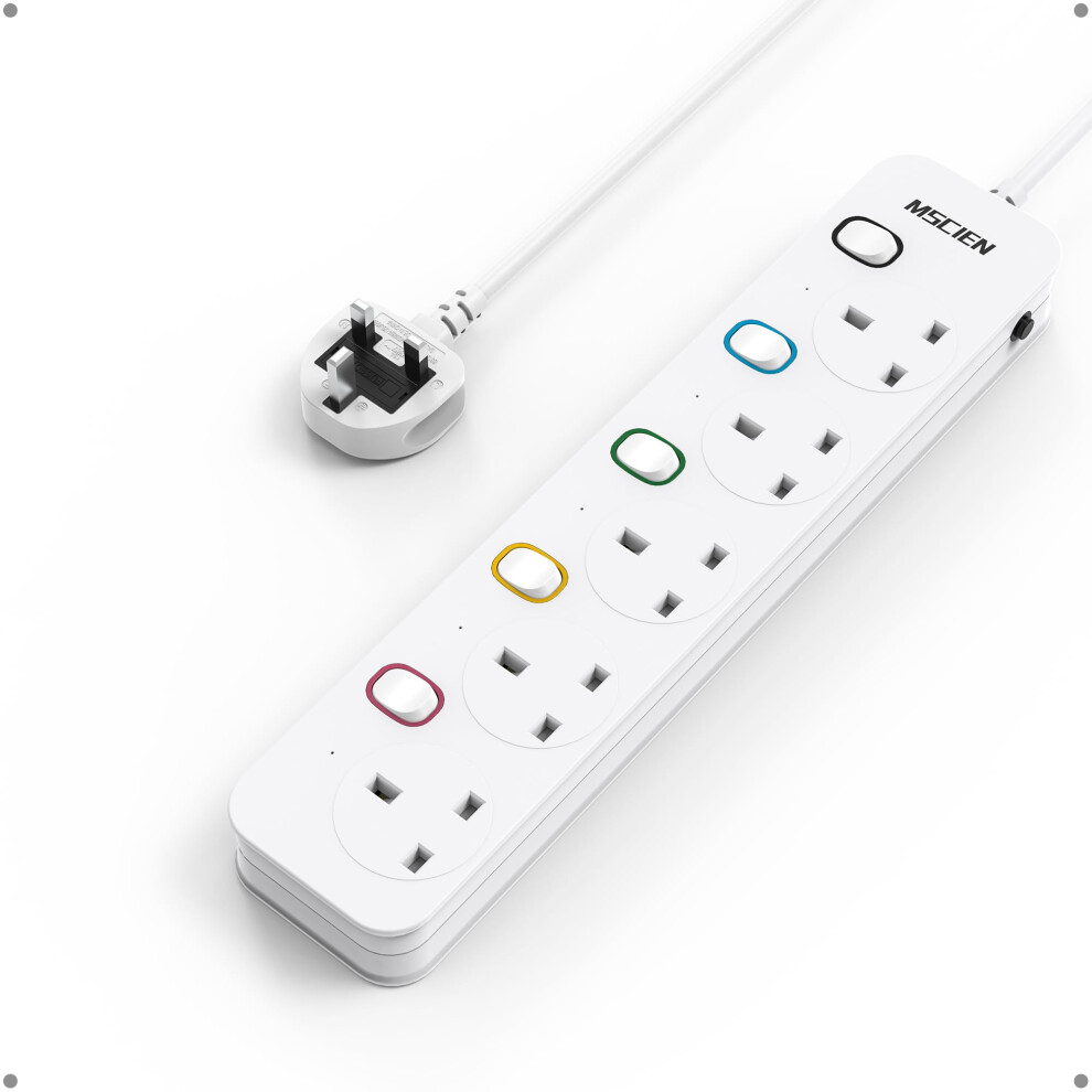 Mscien Short Extension Lead 1M 5 Way Wall Mounted, 1M Extension Lead 5 Gang Switched with Multiple Protection, Fused Power Strip with Indicator Light