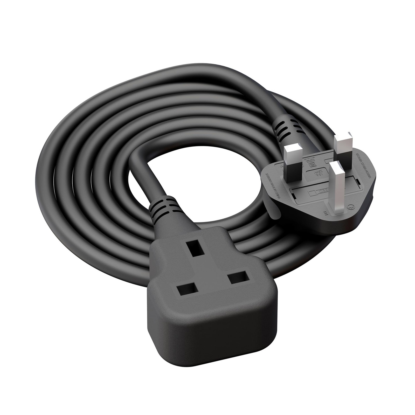 1 Meter Short Extension Lead Single Plug Socket Power Cable 13 Amp Extension Cord Electrical Socket Black