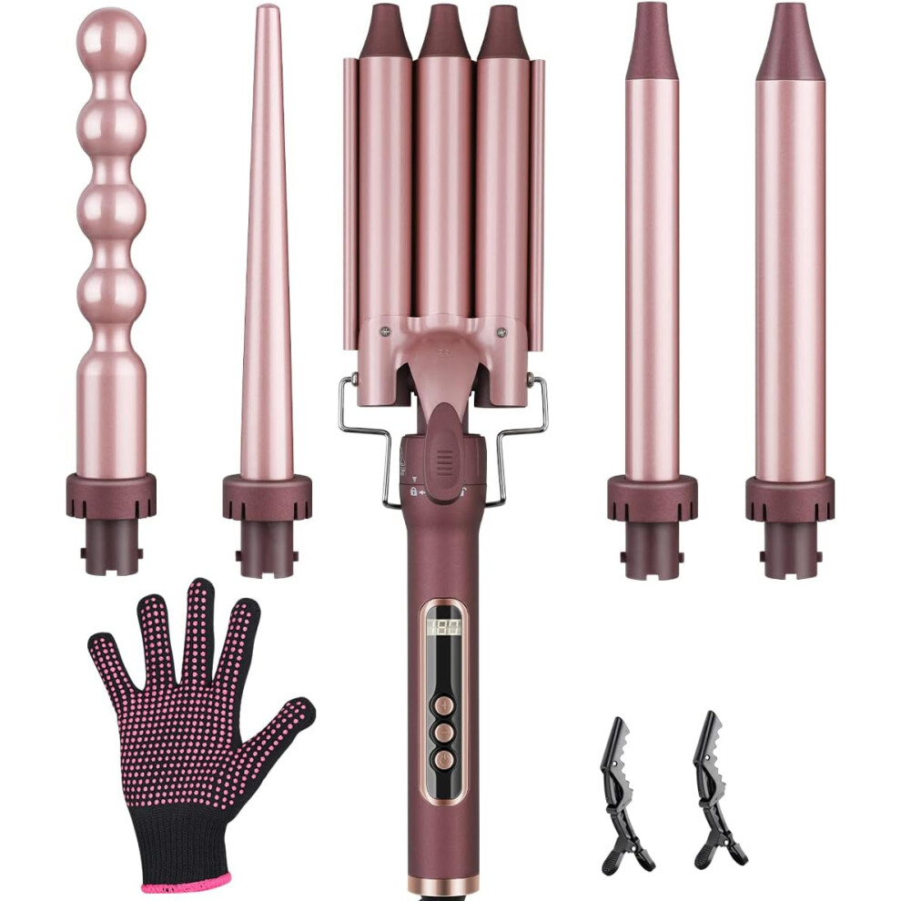 Curling iron with 3 curling irons, 5 in 1 ceramic curling iron set curling tongs, interchangeable curling irons for long/short hair, LCD display