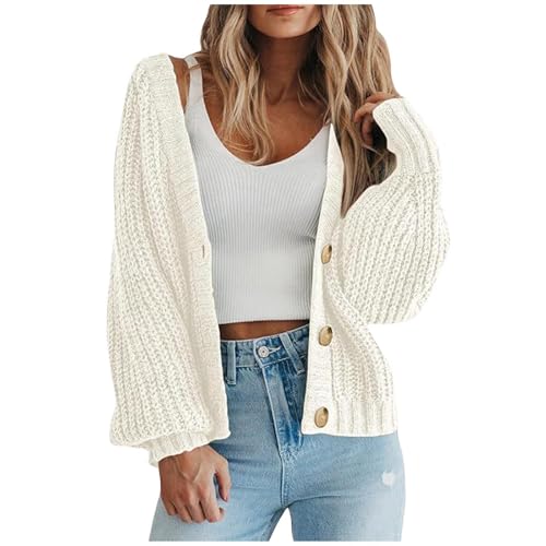 Aottori Women's Cardigans Button Down Knit Cardigan Sweater Ladies Long Sleeve Crew Neck Short Bolero Shrugs for Dresses White L