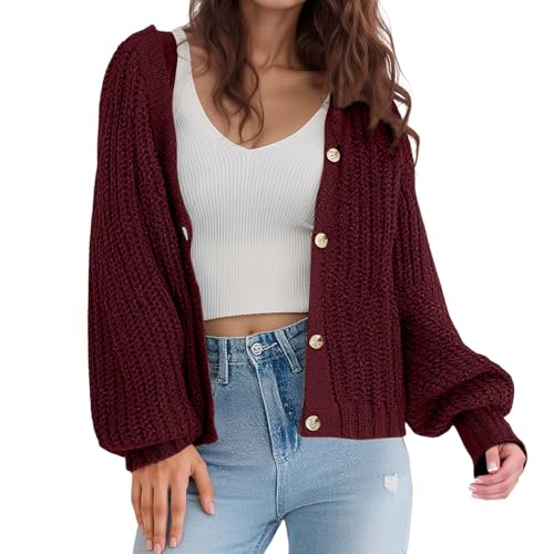 KnoRRs Women'S Short Cardigan,Long Sleeve Knit Cardigans Casual Outwear Solid Color V Neck Button Down Knit Cardigan Elegant Sweater Cardigan Autumn Winter Spring,Dark Green,S
