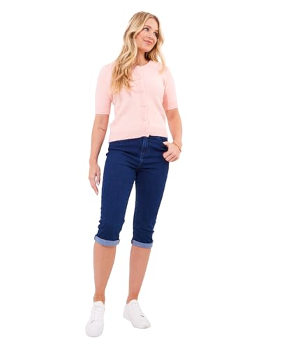 Joe Browns Women's Vintage-Inspired Crew Neck Short Sleeve Cardigan Sweater, Blush, 14