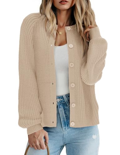 Zeagoo Womens Cardigan Long Sleeve Button Down Sweater Casual Short Cardigan Chunky Knit Open Front Jumpers for Ladies Elegant Solid Cardigan Champagne L