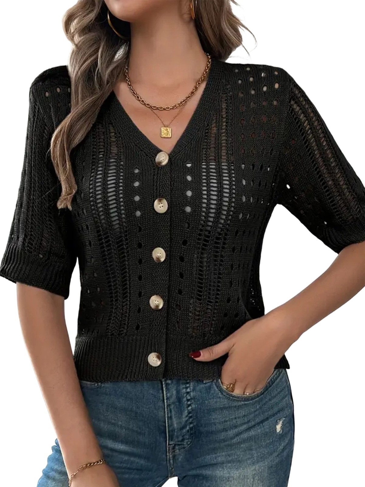 Women'S Comfy Knit Sweater Cardigan Casual Hollow-Out Short Sleeve Cardigan4748