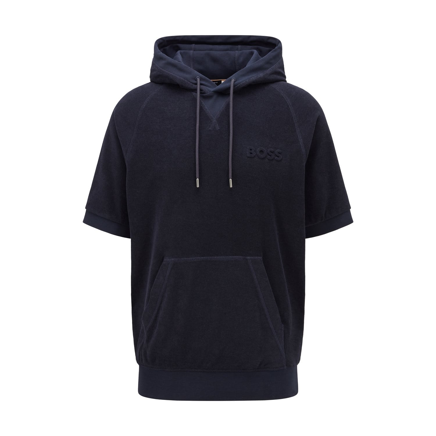 Boss Mens Sealy 09 Short Sleeve Hooded Sweatshirt in Navy - Blue Cotton - Size Small
