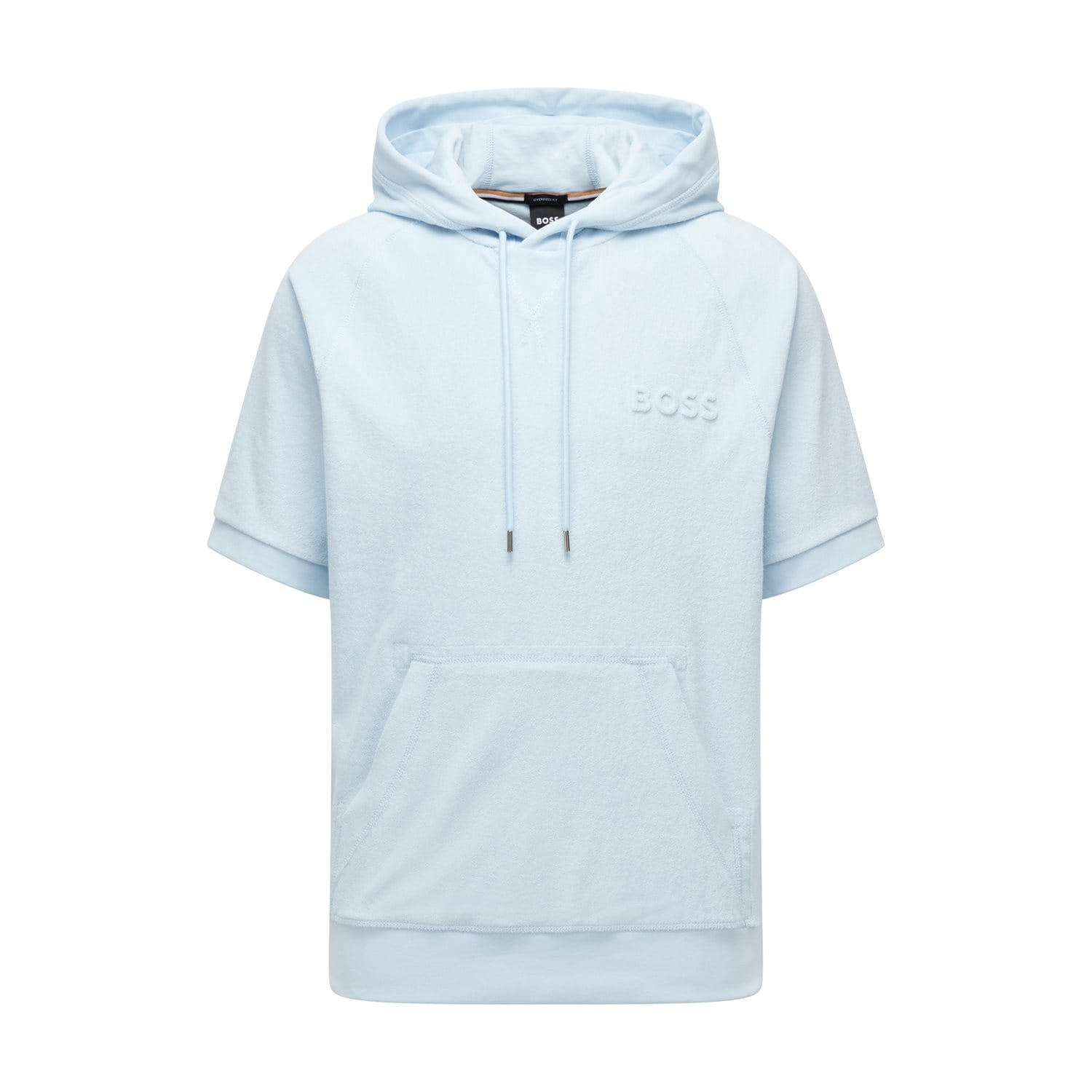 Boss Mens Sealy 09 Short Sleeve Hooded Sweatshirt in Light Blue Cotton - Size X-Large