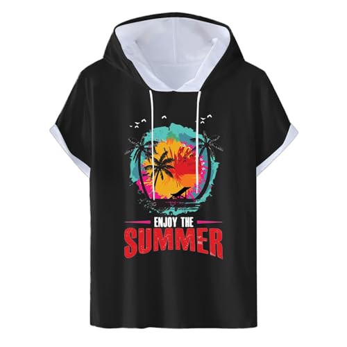 T Shirt Men - Hoodie Men's Short Sleeve Hoodie Sweatshirt With Hood Casual Hoodie Loose Hoodie Tops Plus Size Pullover Comfortable Sports Shirt Streetwear Top