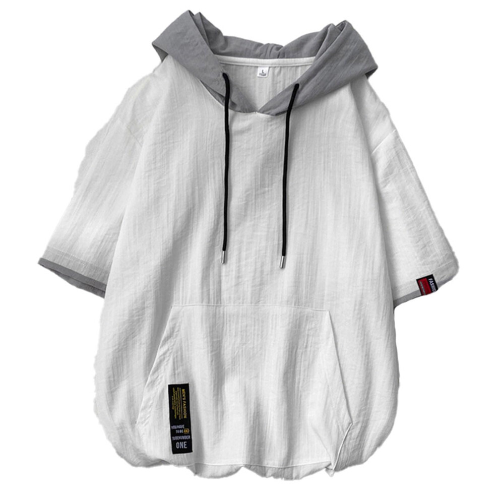 Men's Short Sleeve Hoodie Leisure T-Shirt With Hood Breathable Sweatshirt Oversize Harajuku Streetwear White XXL