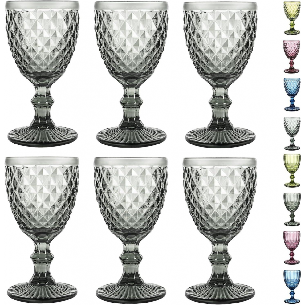 6pack-Vintage Drinking Glasses, 8Oz 240ml Thickend Glass Wine Glasses, Dishwasher Safe Short Stemmed Glass Goblets Glassware for Juice Martinis C