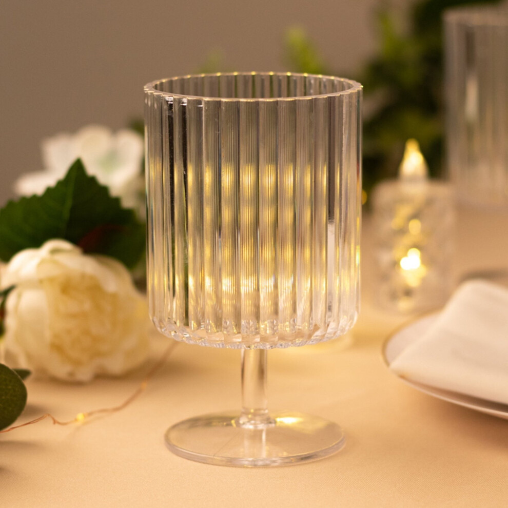 BalsaCircle 6 Clear 12 oz Plastic Wine Glasses Vintage Ribbed Pattern Short Stemmed Cocktails Dining Tableware Decorations