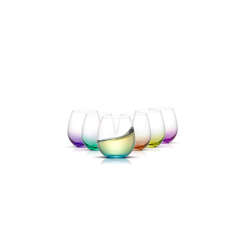 JoyJolt HUE Stemless Wine Glass Set. Large 15 oz Stemless Wine Glasses Set of 6. Short Wine Tumblers for White Wine Glasses, Red Wine Glasses, Water G