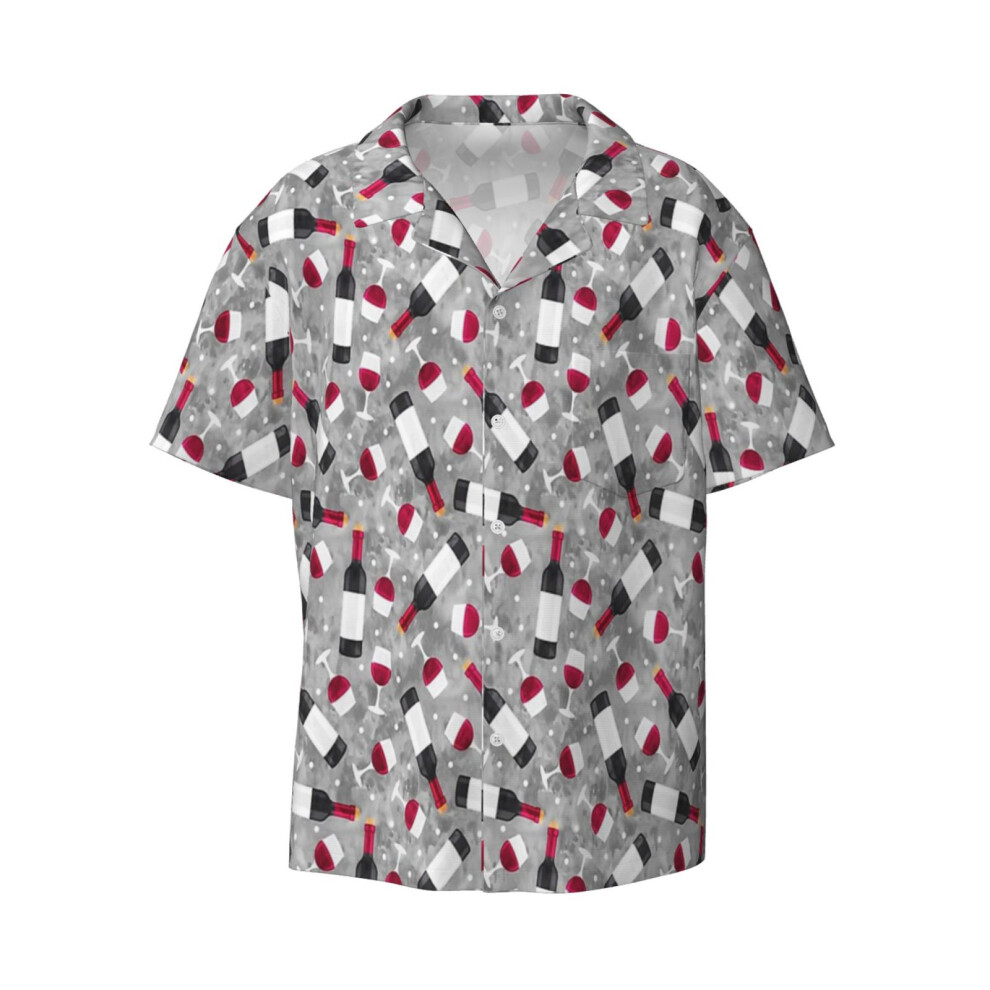 (Red Wine - Wine Glasses And Bottles - Grey _4715) Men's Hawaiian Shirts Cuban Collar Vintage Bowling Short Sleeve Button Down Beach Shirt Casual Summ