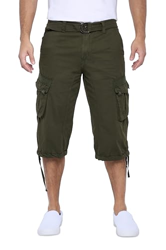 X RAY Men's Belted Cargo Long Shorts 18" Inseam Below Knee Length Multi Pocket 3/4 Capri Pants (Big and Tall Shorts for Men), Olive Green, 48