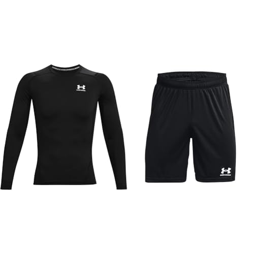 Under Armour Men UA HG Armour Comp LS, Long-Sleeve Sports Top, Breathable Long-Sleeved Top for Men & Challenger Core Shorts Men's, L, Black