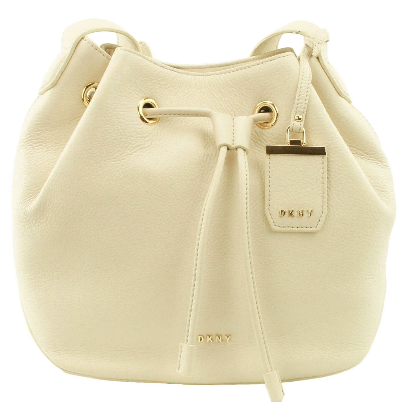 DKNY Bucket Bag Shoulder Cream Sand Dollar Medium Drawstring Grained Leather