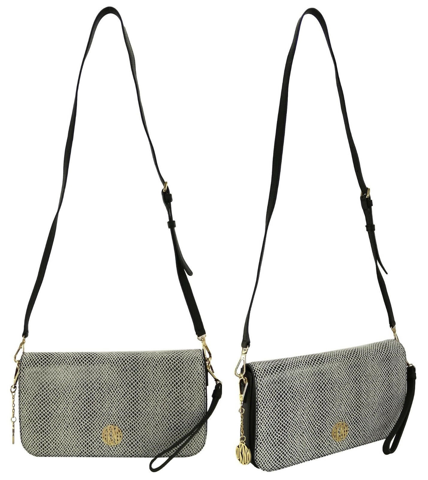 DKNY Crossbody Bag Black & White Snakeskin Embossed Leather Shoulder RRP £225
