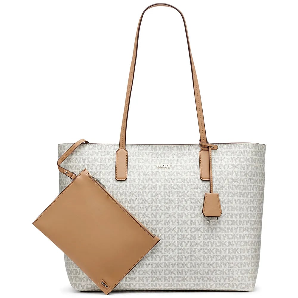 DKNY Tote Bag Cream Ivory Off White Sand Dollar Medium Leather Shoulder Handbag