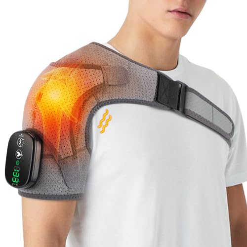 AFDEAL Heated Shoulder Wrap Brace Support with Vibration, Heating Electric Shoulder Wrap with Massage, 3 Modes Cordless Vibration Shoulder Pad for Men and Women, Fits for Left or Right Shoulder, Grey