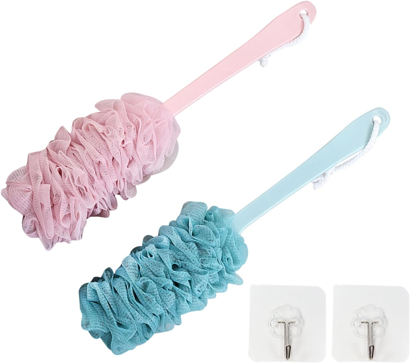 2 Pack Loofah Bath Brush with Long Handle Bath Shower Back Scrubber Body Brush
