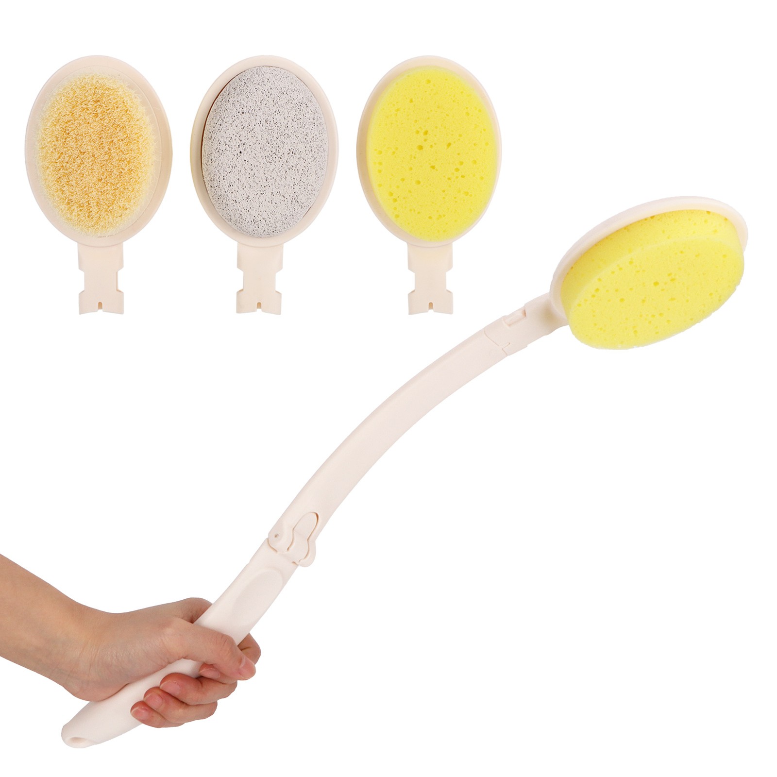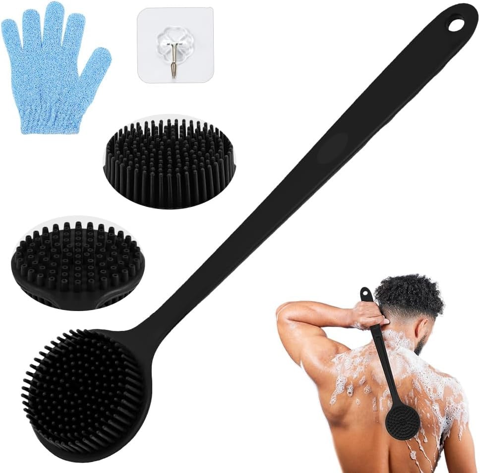 4 in 1 Back Scrubber for Shower, Long Handle Shower Back Scrubber with 3 Convert