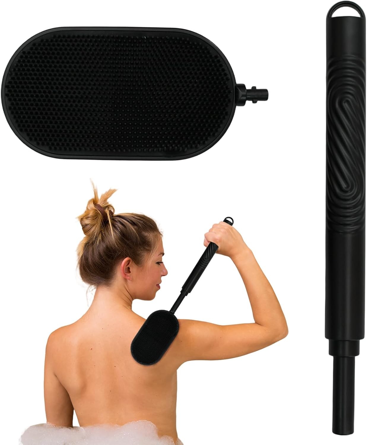 Telescopic Body Brush Dual-Sided Silicone Shower Scrubber Back Scrubbers with L