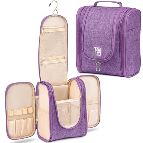 BOACAY Hanging Travel Toiletry Bag for Women & Men, Makeup Bag, Shower & Wash Bag, Organiser Kit for Cosmetics, Essentials, Travel Accessories (M) Wild Purple