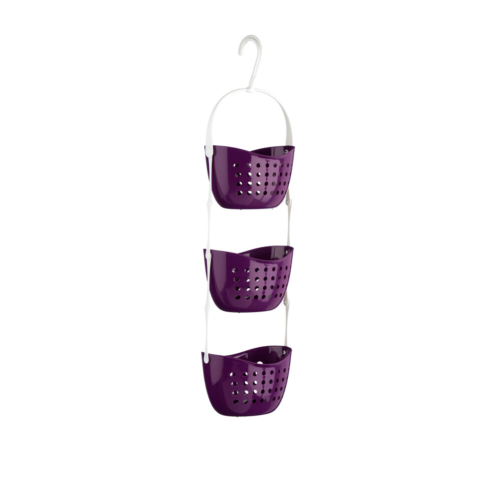 Premier Housewares 1601486 3-Tier Shower Caddy / Shelf Purple Small Storage Baskets / Hanging Organiser Plastic Bathroom Caddy / Shower Organiser 23 x 17 x 83
