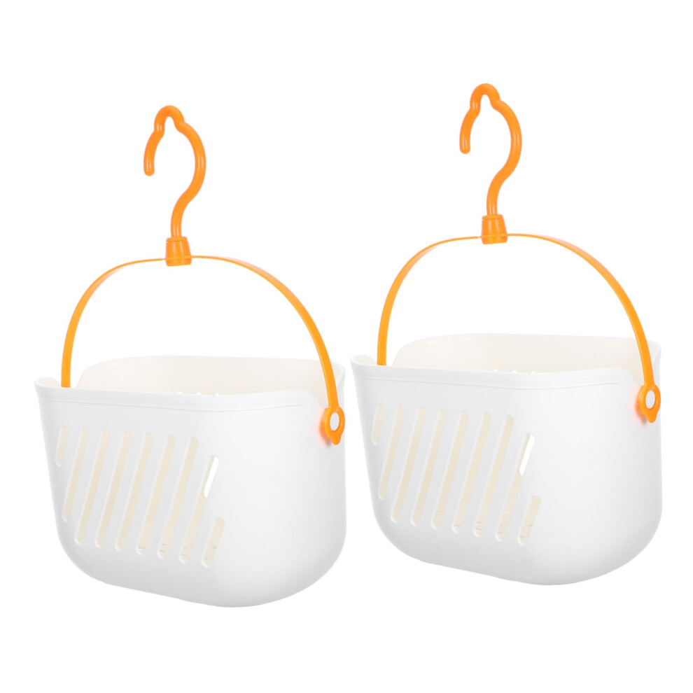 (White) Hanging Shower Caddy Hanging Laundry Basket 2 Hooks Plastic