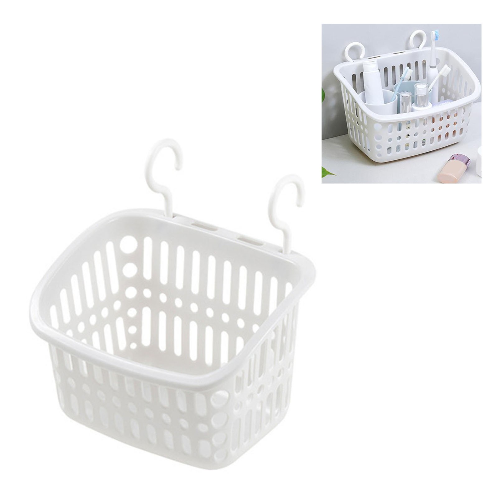 (As show, One size) Plastic Storage Basket with Hook Hanging Shower Caddy Kitchen Hanging Organizer