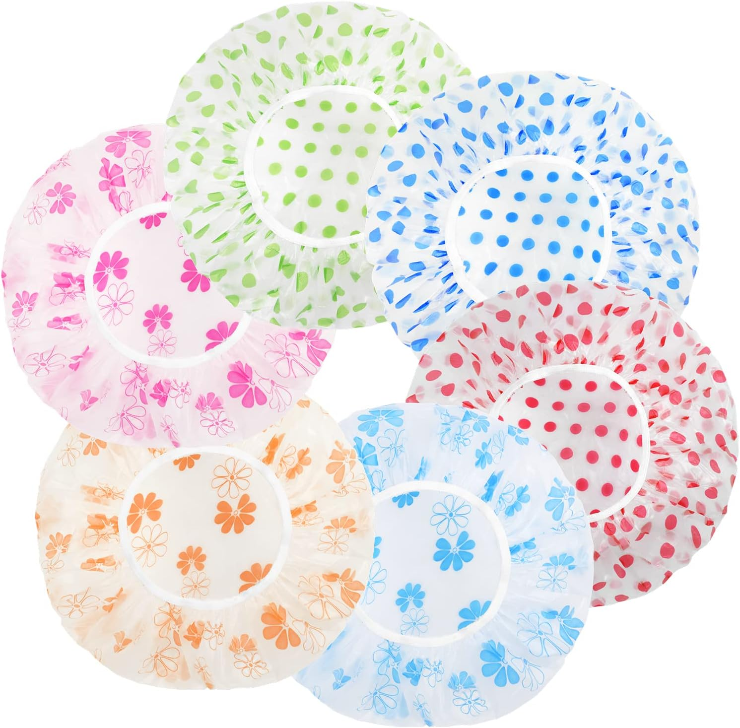 URAQT Shower Caps for Women, 6 Pack Waterproof Bath Caps Reusable Shower Hats, E