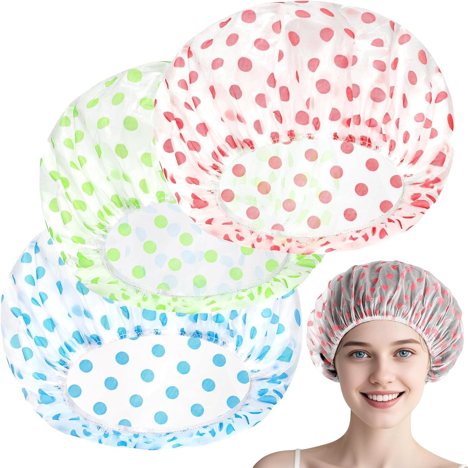 New 3PK Shower Caps Reusable for Women, Waterproof, Shower Hat Adult Hat