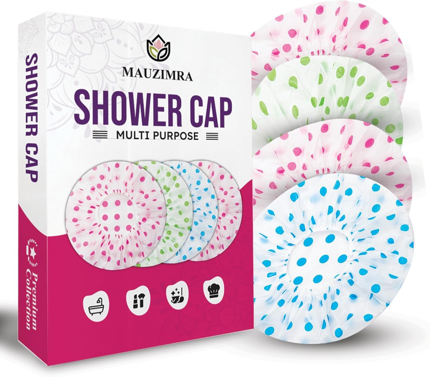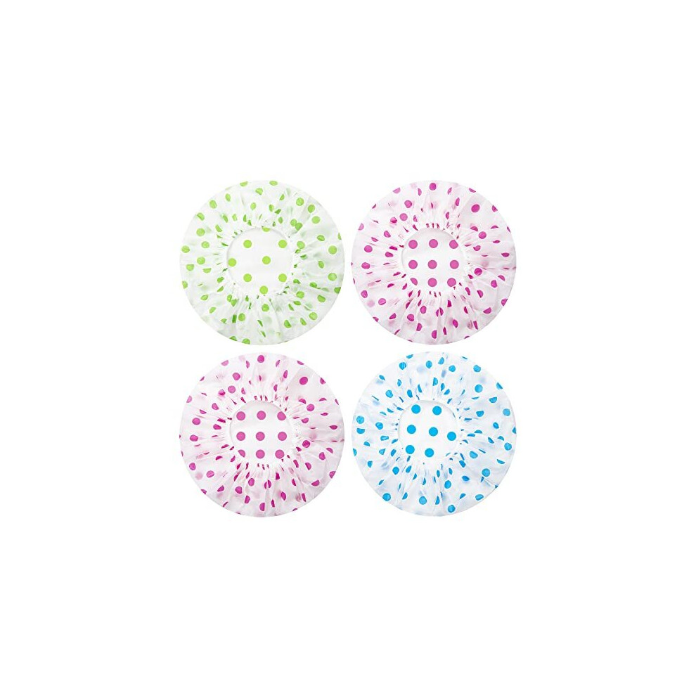 Nimxy Pack of 4 Shower Cap, Reusable Shower Caps For Women & Men - Waterproof with Elastic Band & Soft Lining (Dotted)